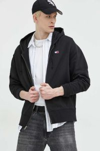 Бавовняна кофта Tommy Jeans чоловіча колір чорний з капюшоном однотонна