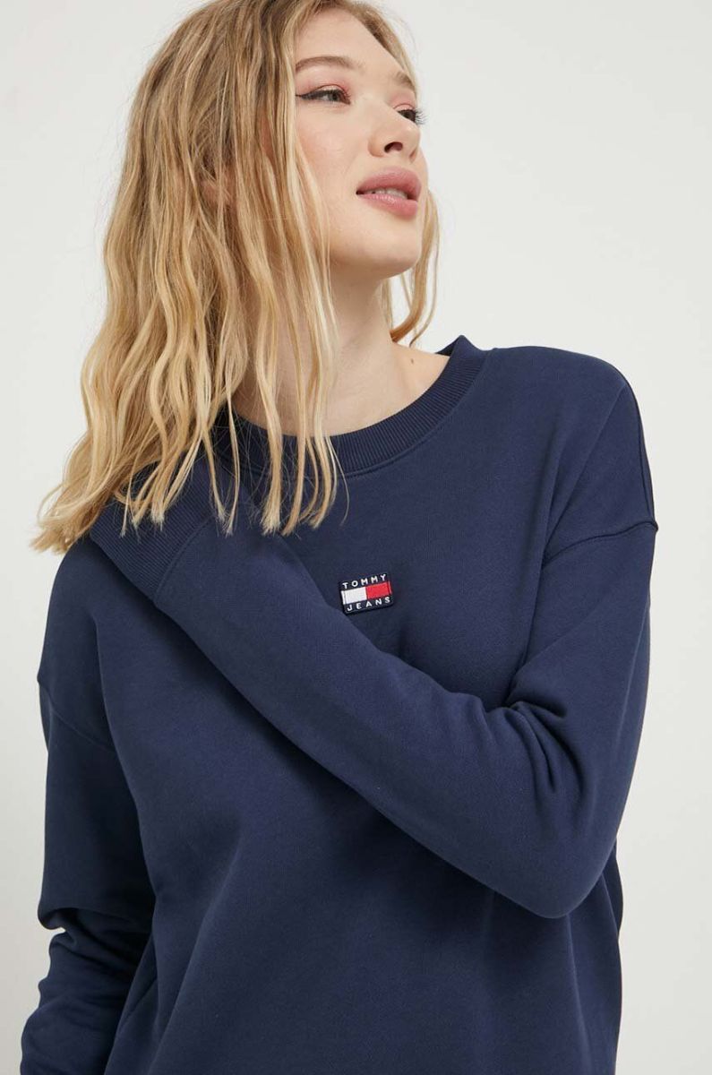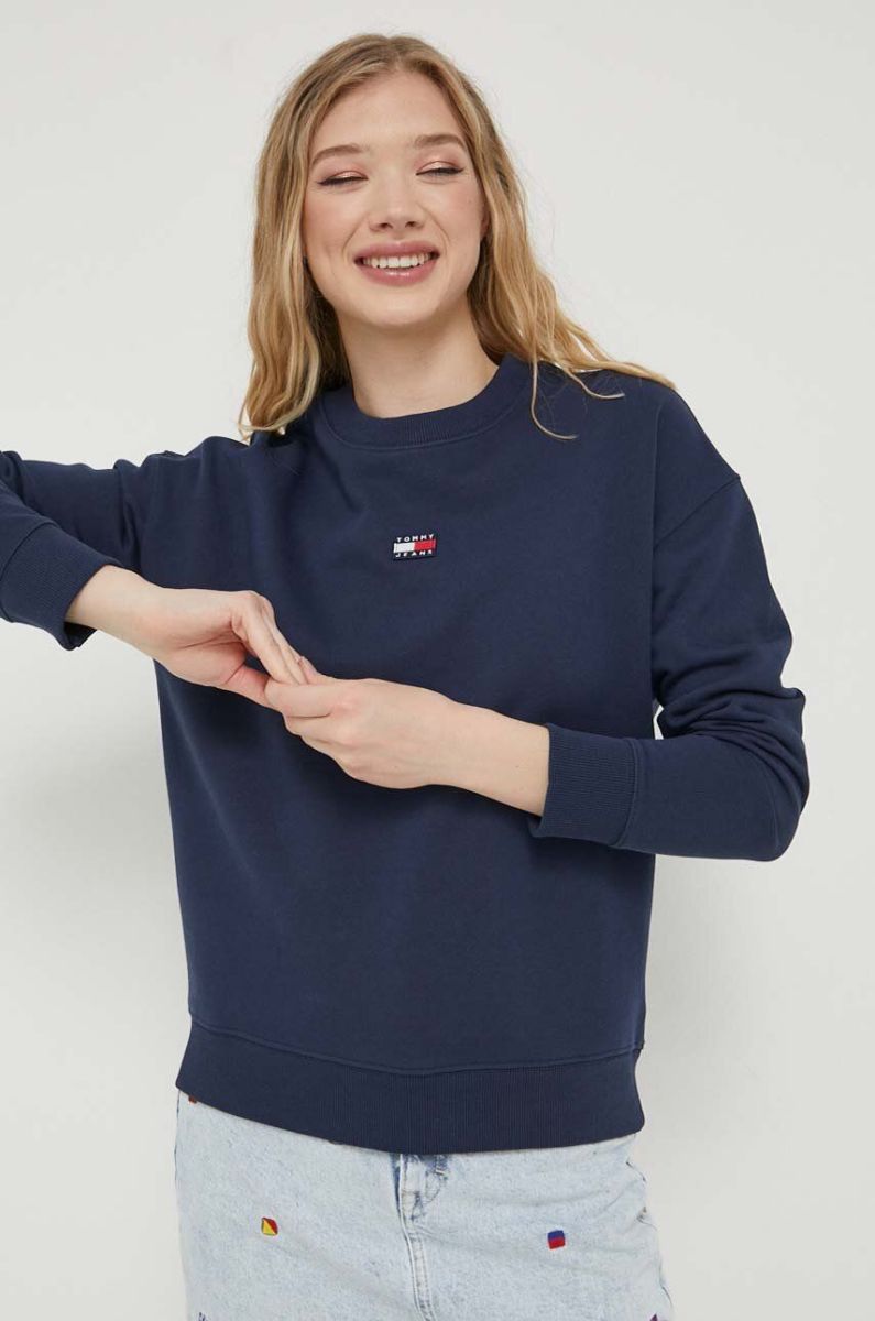 Бавовняна кофта Tommy Jeans жіноча колір синій однотонна