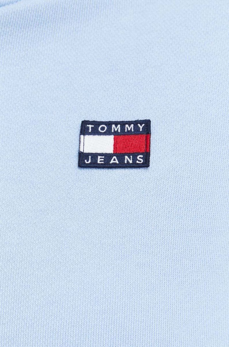 Бавовняна кофта Tommy Jeans жіноча з капюшоном однотонна колір блакитний