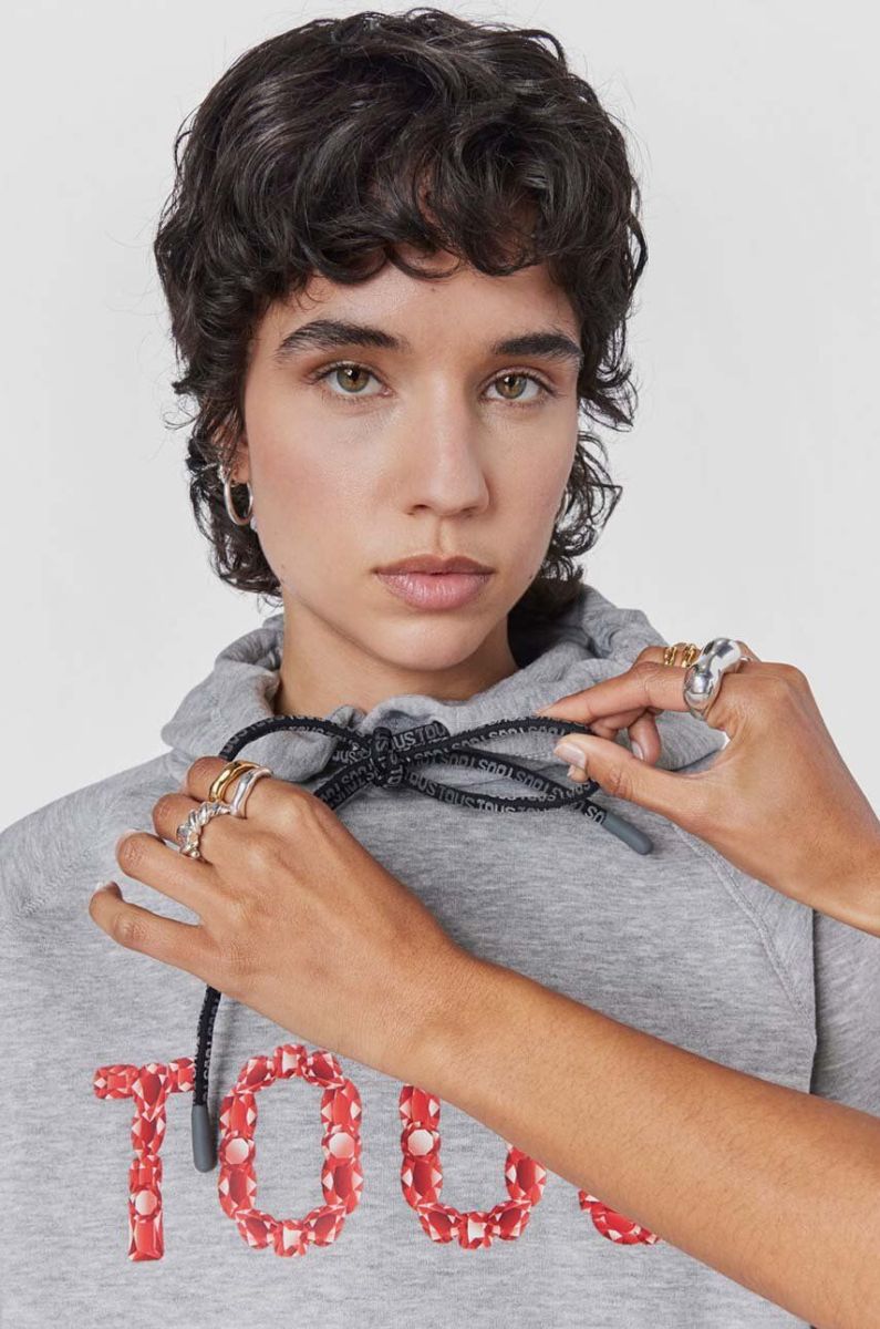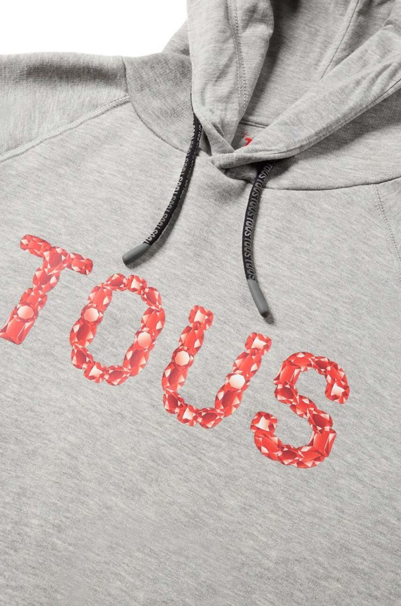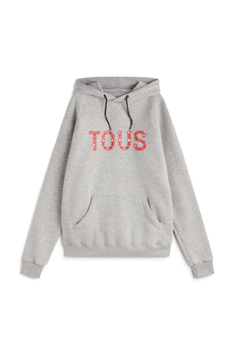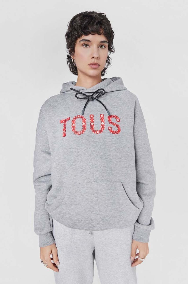 Бавовняна кофта Tous жіноча колір сірий з капюшоном з принтом Один розмір
