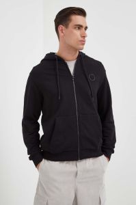 Бавовняна кофта Trussardi чоловіча колір чорний з капюшоном з аплікацією