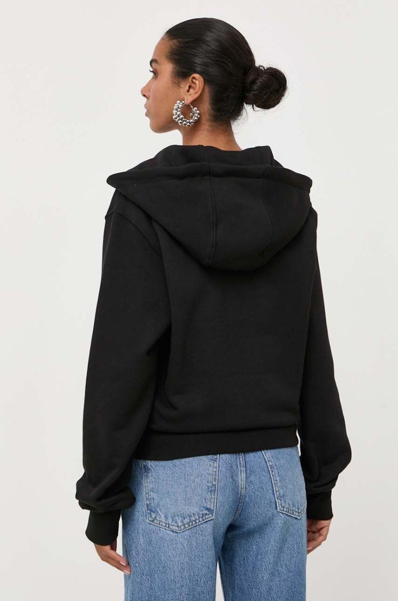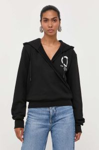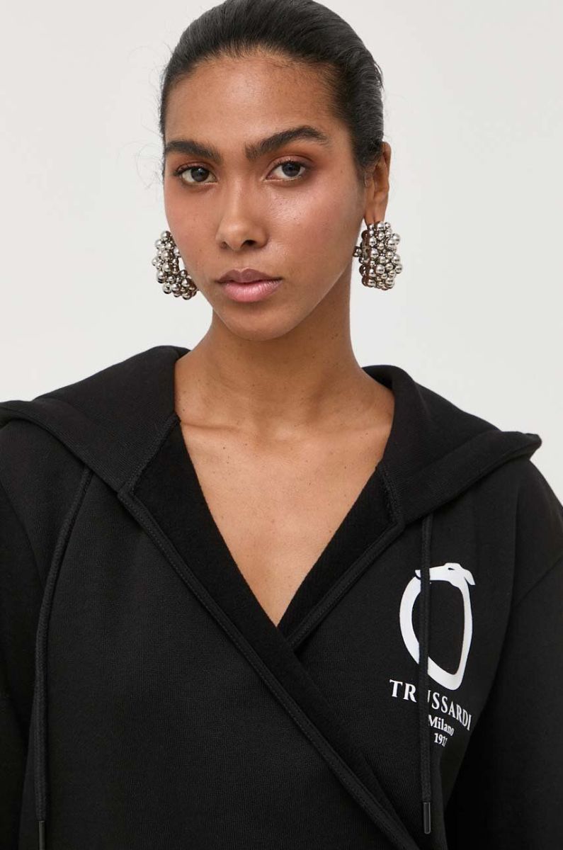 Бавовняна кофта Trussardi жіноча колір чорний з капюшоном з принтом (3378999)