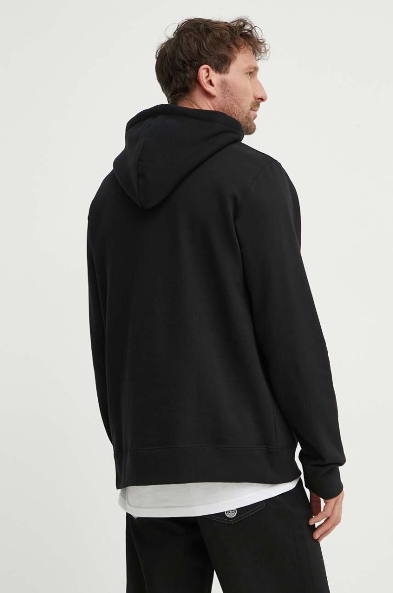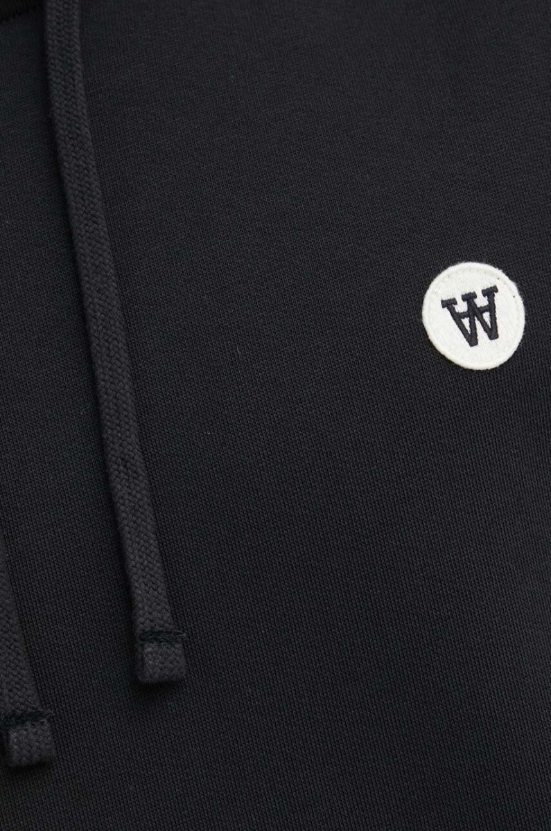Бавовняна кофта Wood Wood чоловіча колір чорний з капюшоном однотонна
