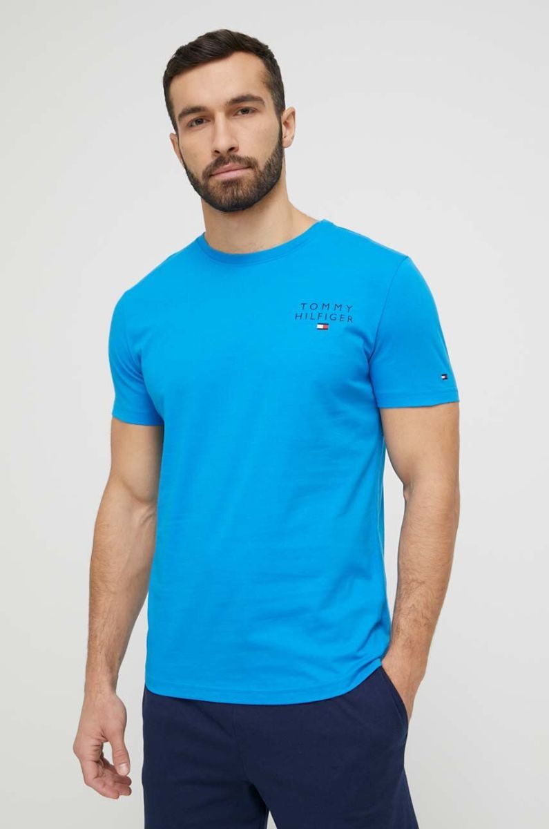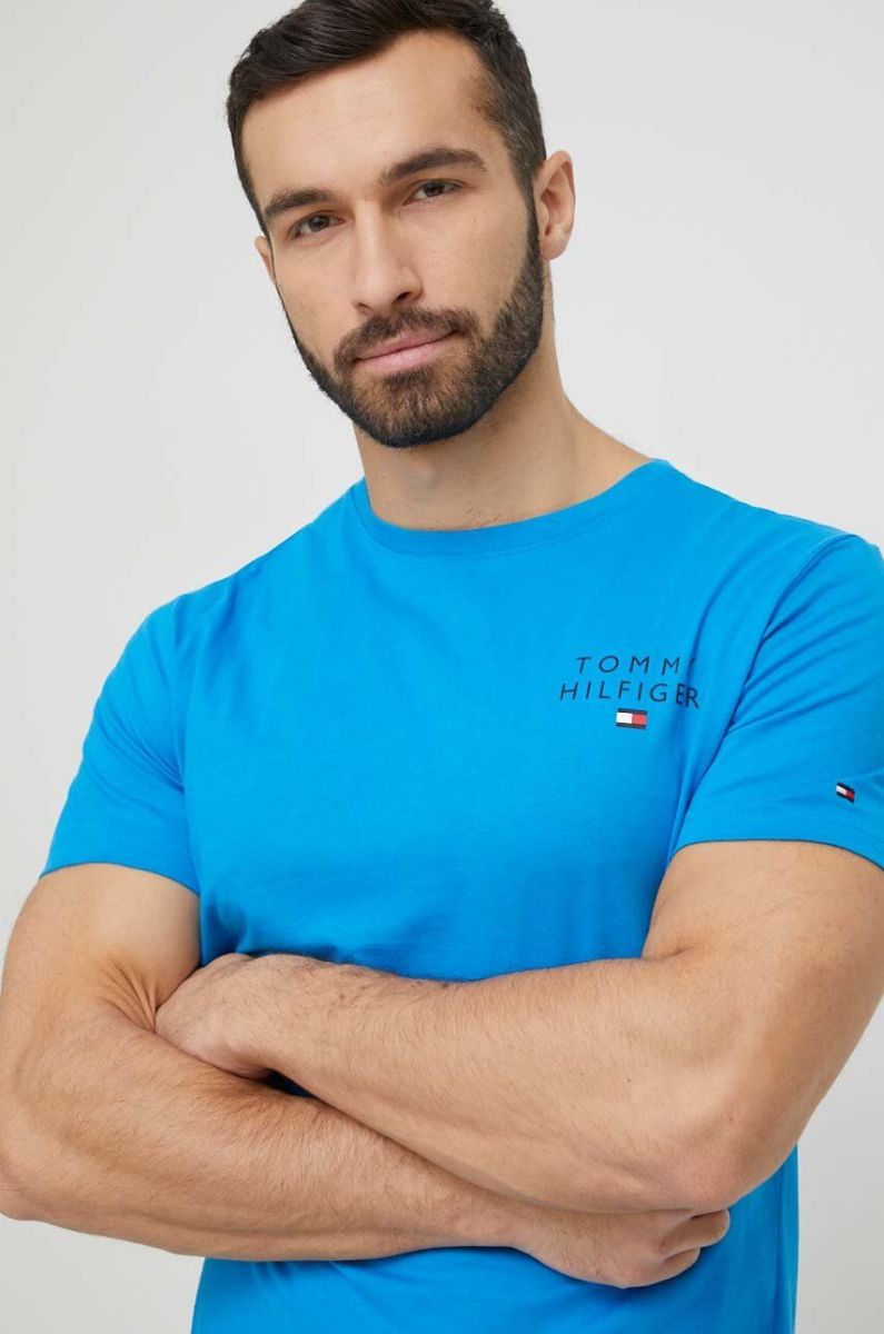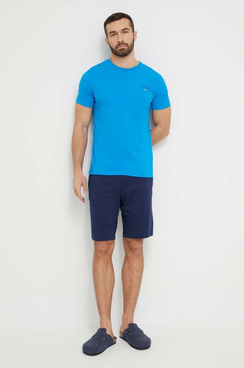 Бавовняна піжама Tommy Hilfiger з принтом колір блакитний
