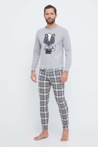 Бавовняна піжама United Colors of Benetton колір сірий візерунок
