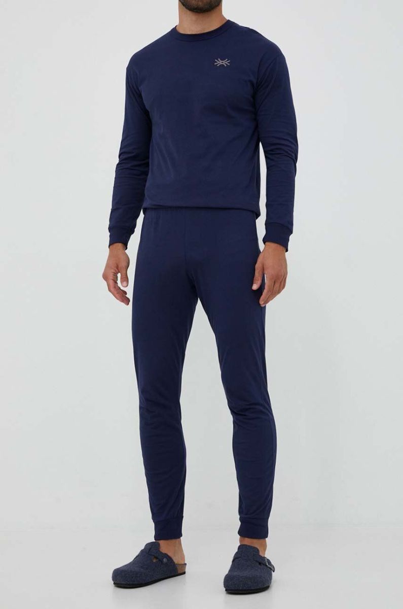 Бавовняна піжама United Colors of Benetton колір синій візерунок