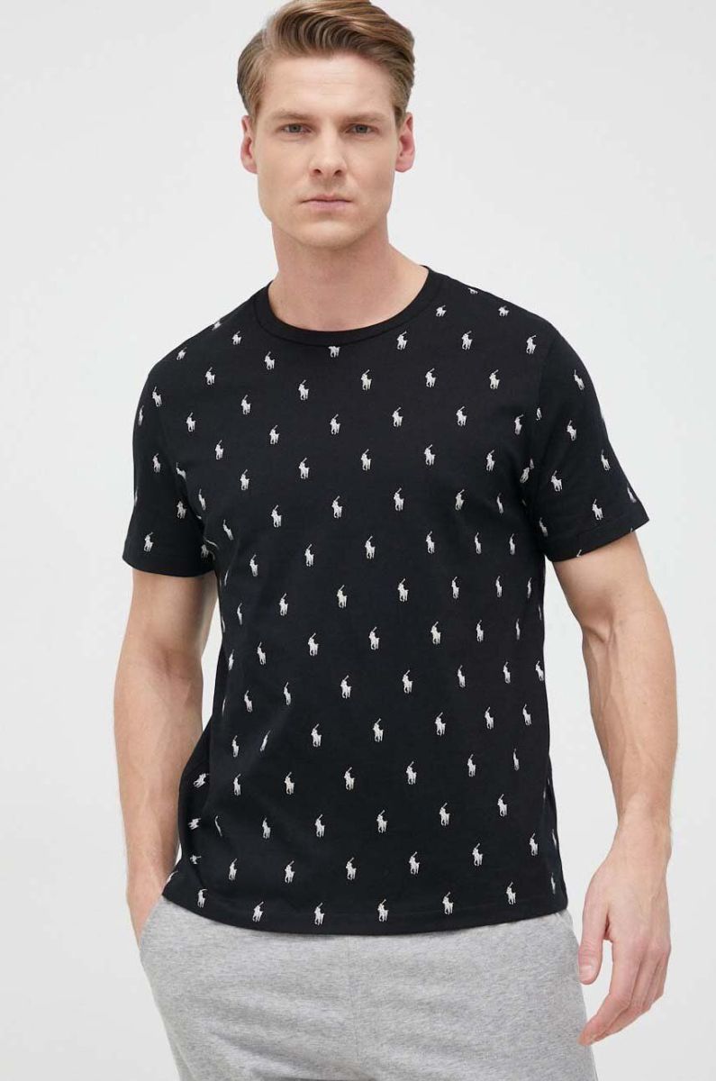 Бавовняна піжамна футболка Polo Ralph Lauren колір чорний візерунок