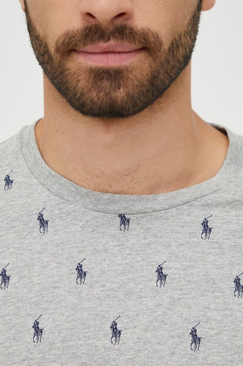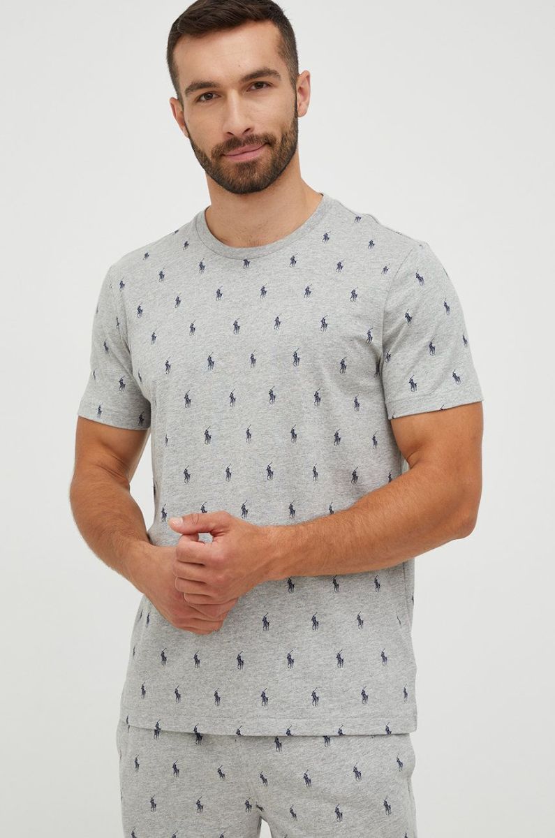 Бавовняна піжамна футболка Polo Ralph Lauren колір сірий візерунок