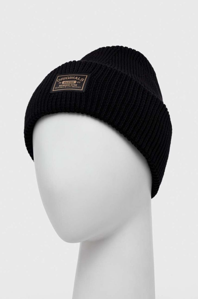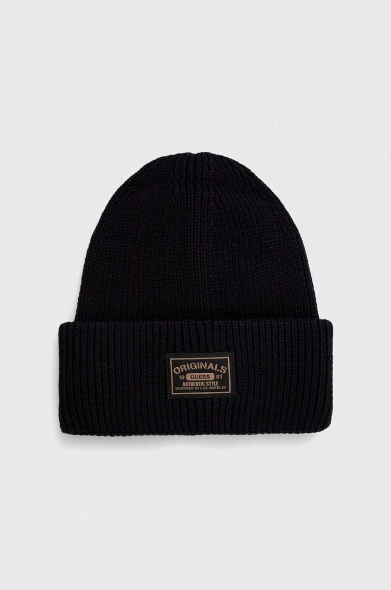 Бавовняна шапка Guess Originals колір чорний з товстого трикотажу з бавовни