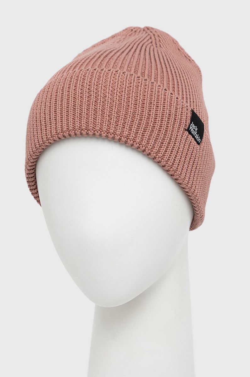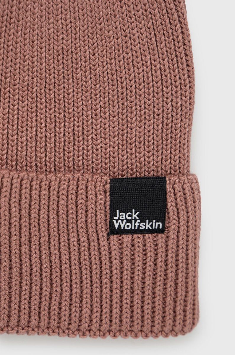 Бавовняна шапка Jack Wolfskin колір рожевий з тонкого трикотажу з бавовни