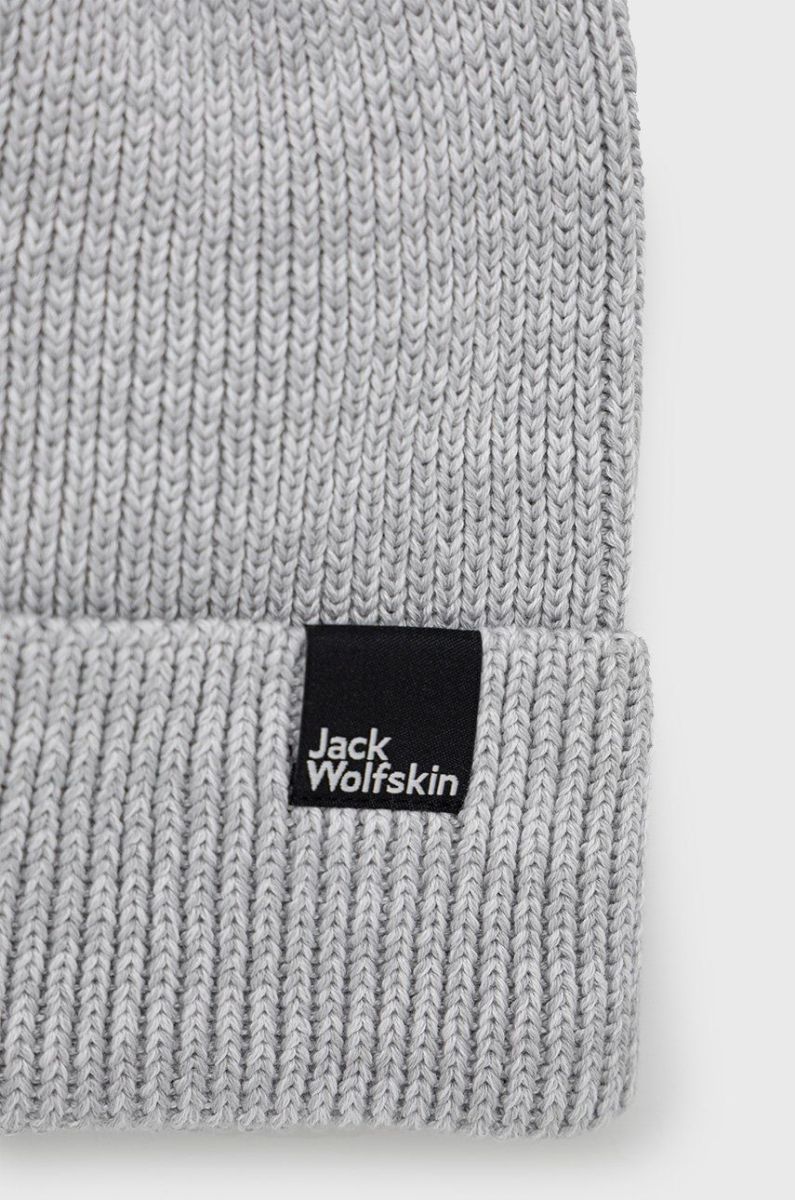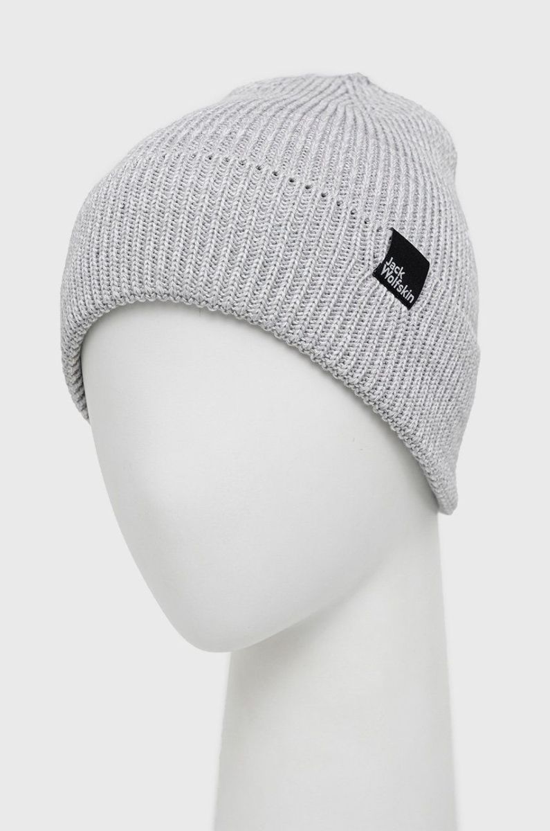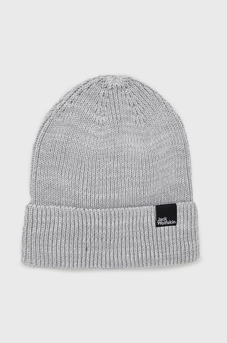 Бавовняна шапка Jack Wolfskin колір сірий з тонкого трикотажу з бавовни
