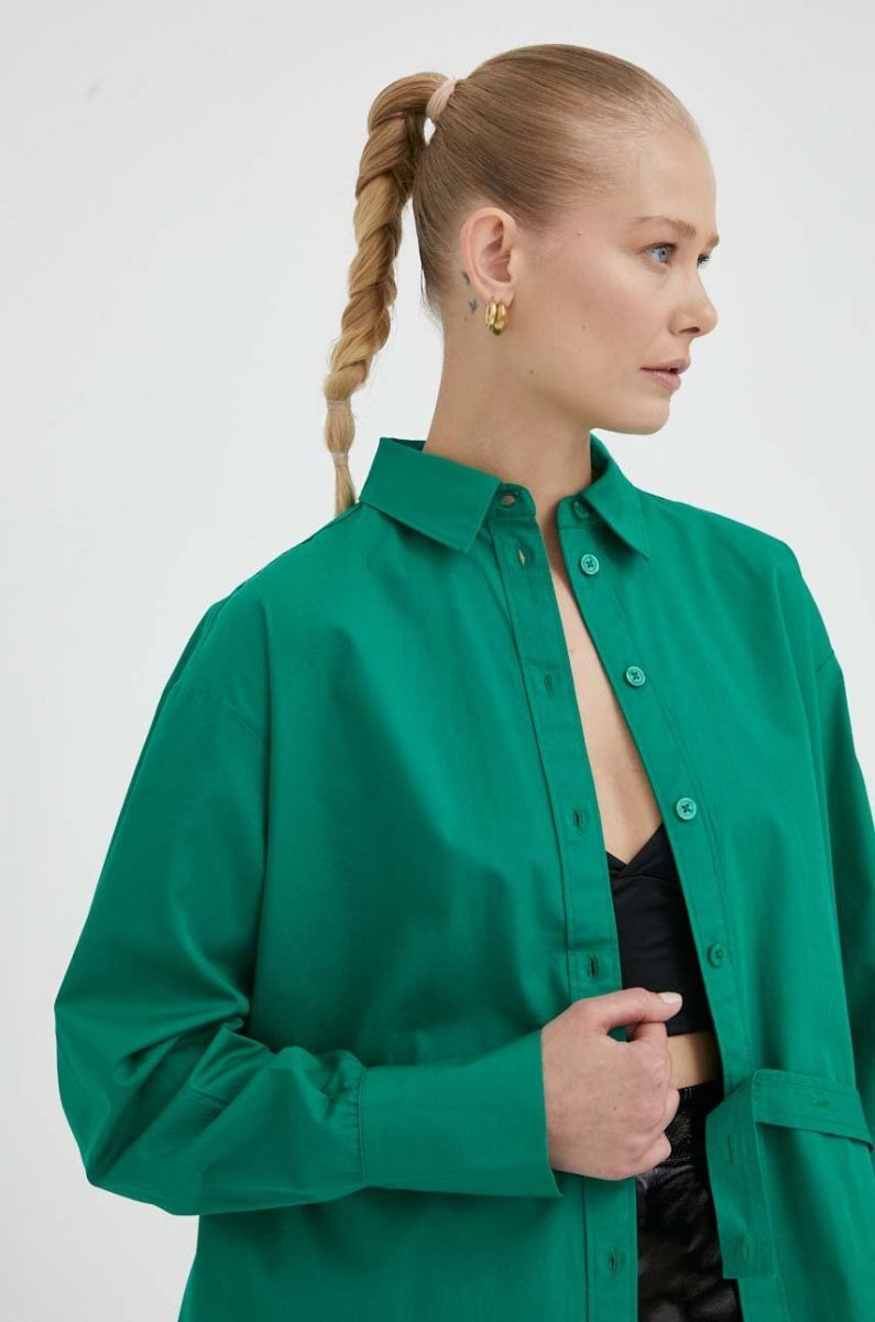 Бавовняна сорочка 2NDDAY жіноча колір зелений regular класичний комір