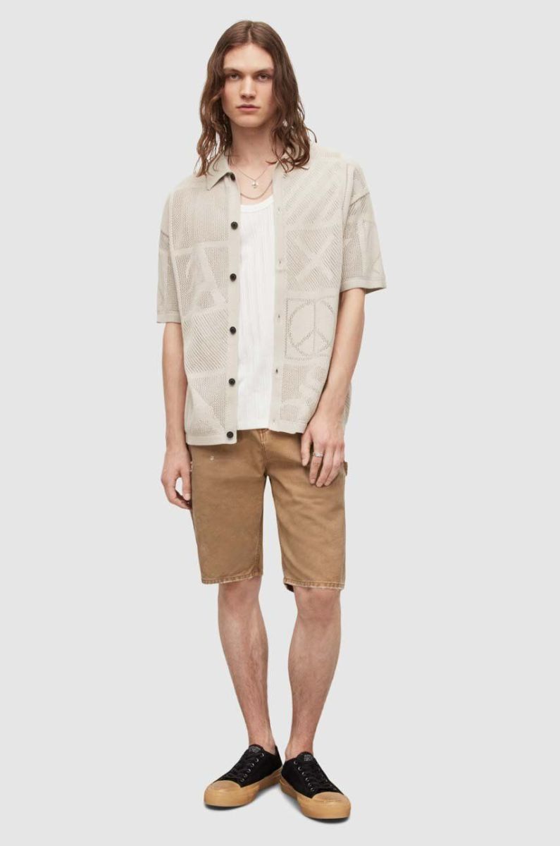 Бавовняна сорочка AllSaints чоловіча колір бежевий relaxed