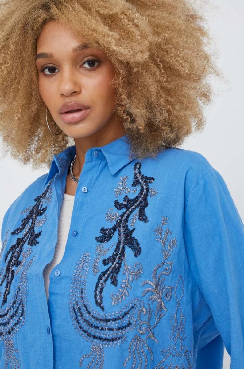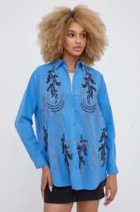 Бавовняна сорочка Answear Lab жіноча relaxed класичний комір колір блакитний (3339534)