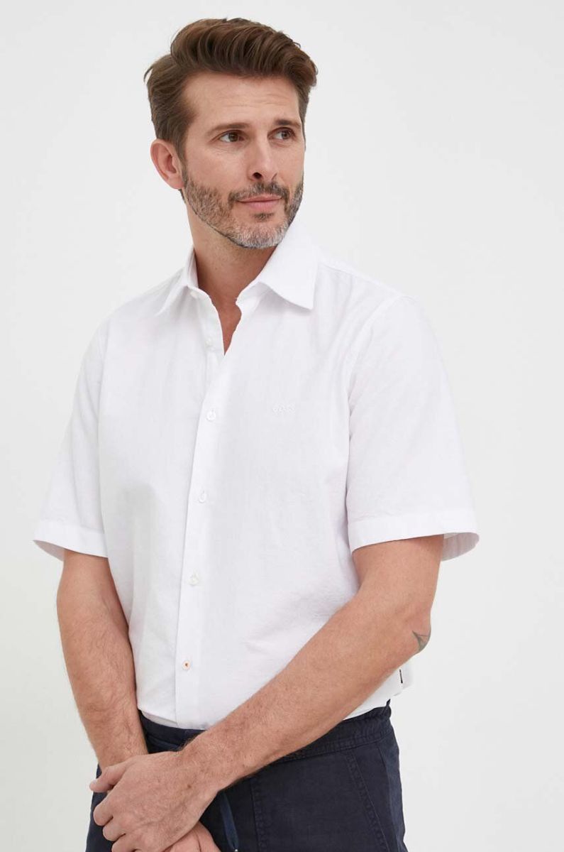 Бавовняна сорочка BOSS BOSS ORANGE чоловіча колір білий regular класичний комір (3223291)