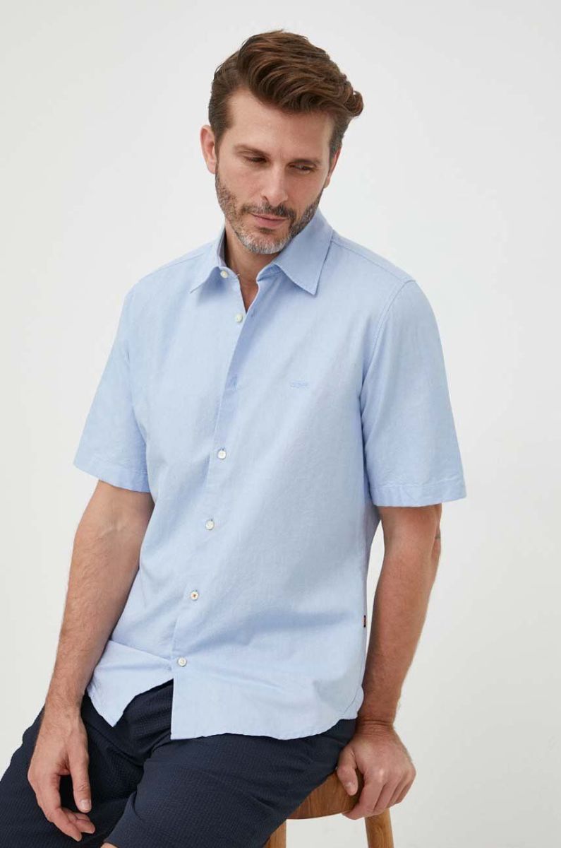 Бавовняна сорочка BOSS BOSS ORANGE чоловіча regular класичний комір колір блакитний (3223730)