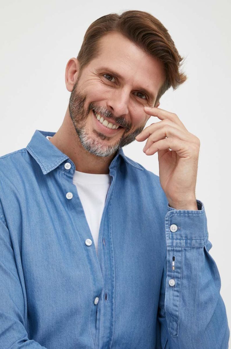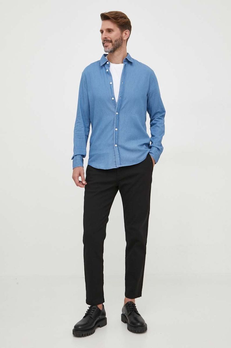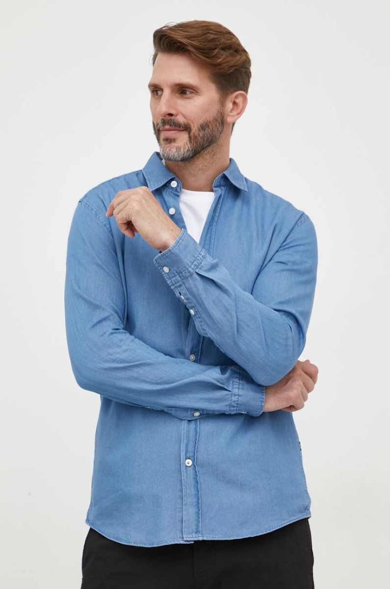 Бавовняна сорочка BOSS чоловіча slim класичний комір колір блакитний (3360054)