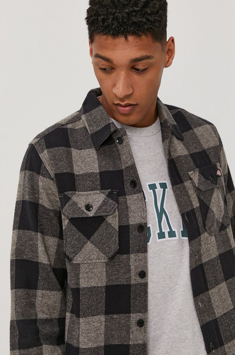 Бавовняна сорочка Dickies чоловіча колір сірий regular класичний комір DK0A4XDZGYM-GREYMELANG