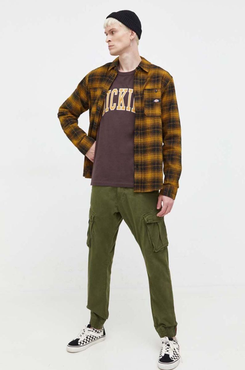 Бавовняна сорочка Dickies чоловіча колір жовтий regular класичний комір