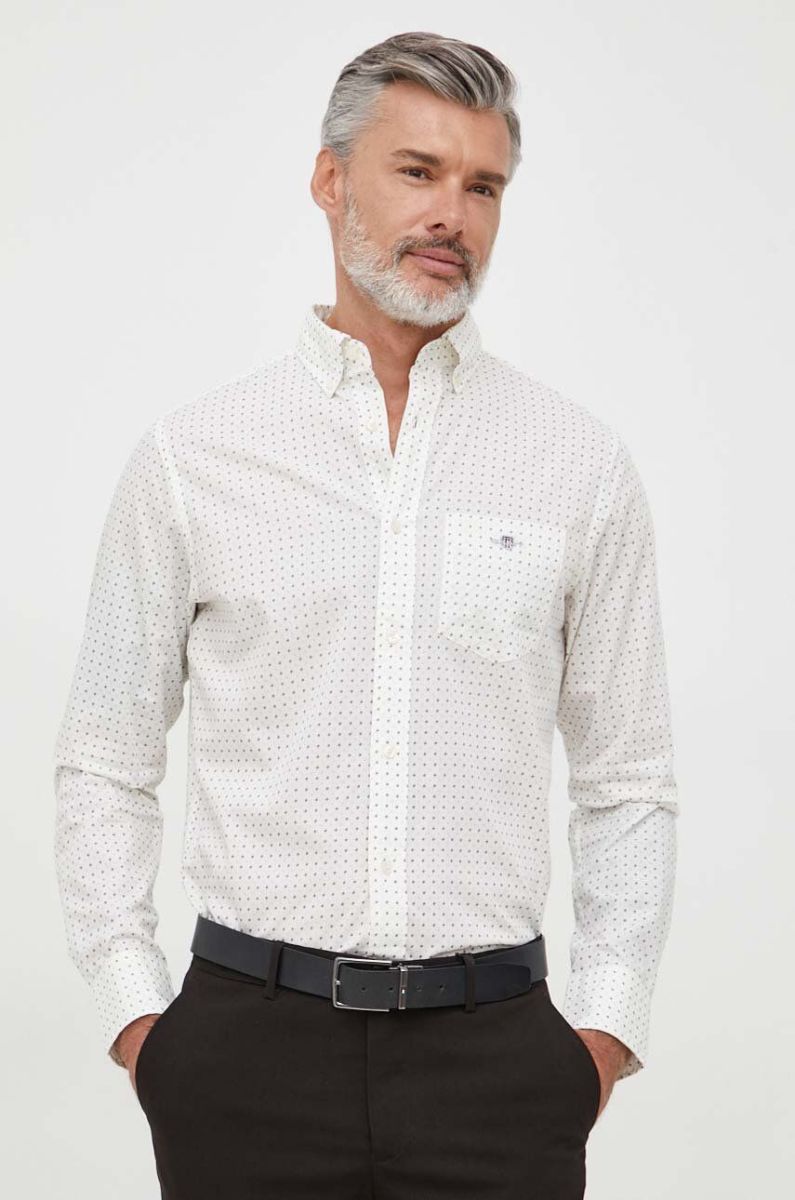 Бавовняна сорочка Gant чоловіча колір бежевий regular комір button-down (3621643)