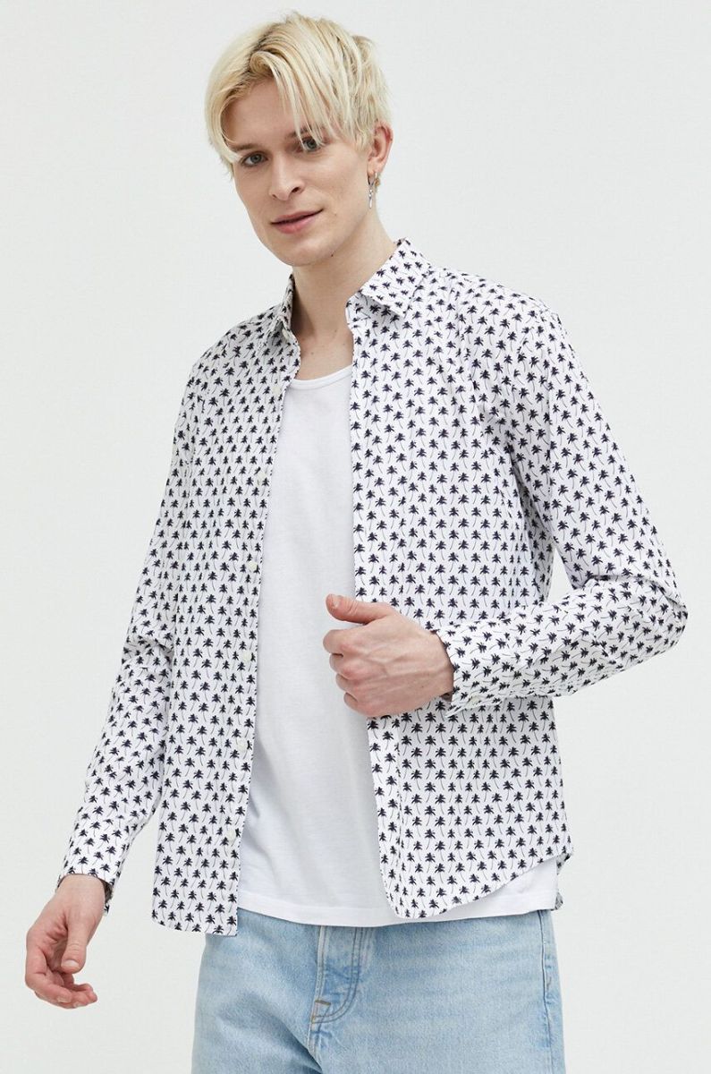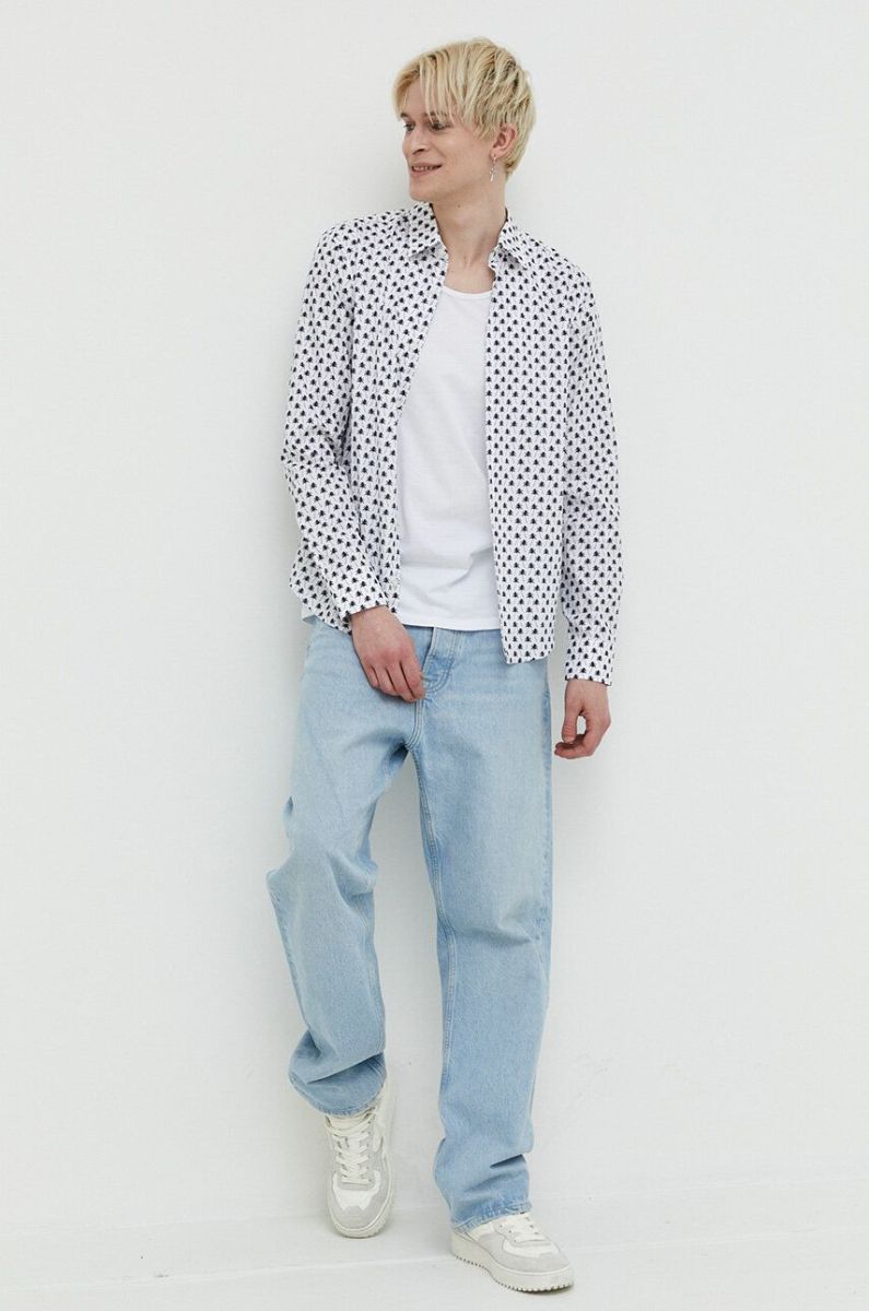 Бавовняна сорочка HUGO чоловіча колір білий regular з італійським коміром