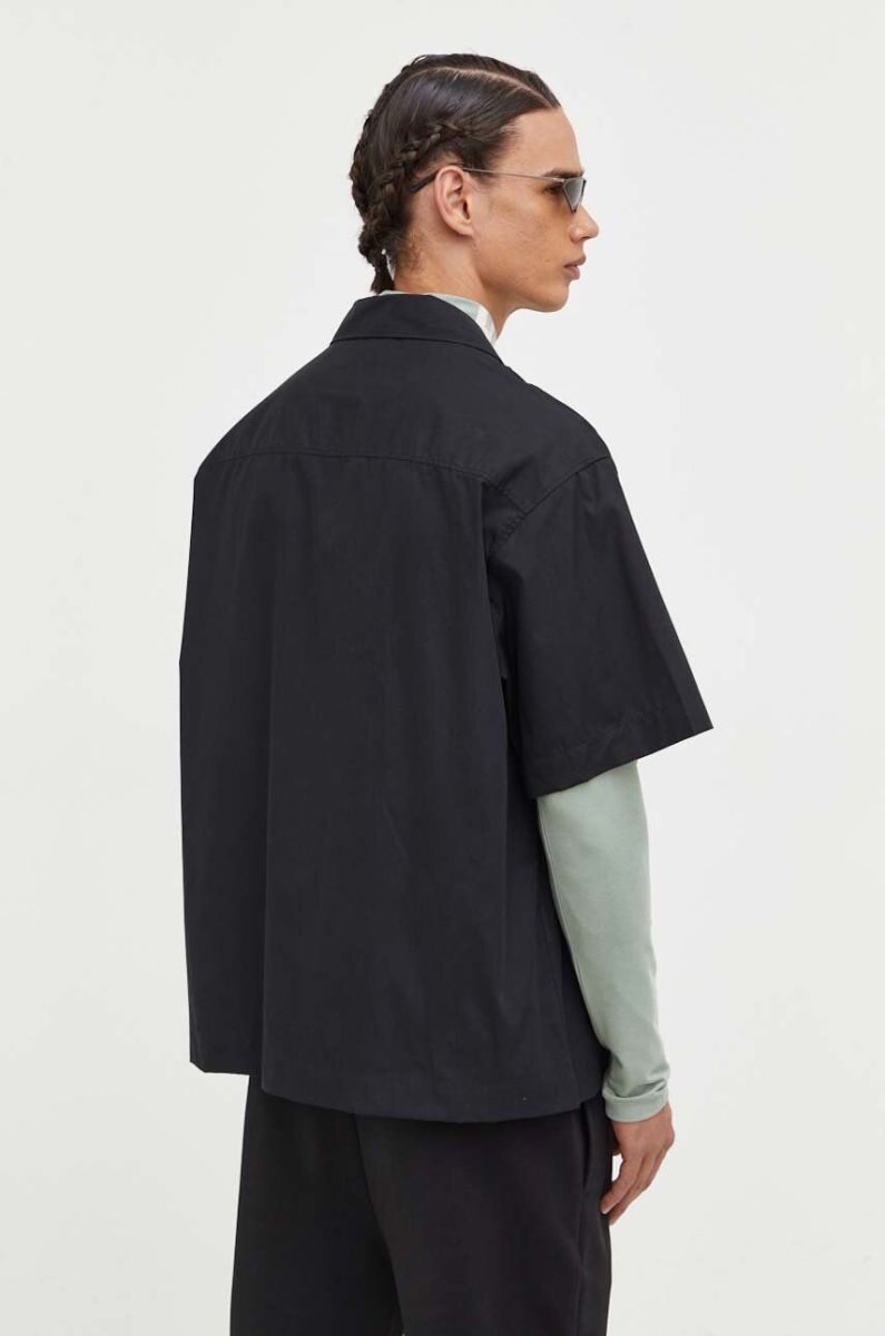 Бавовняна сорочка HUGO чоловіча колір чорний relaxed