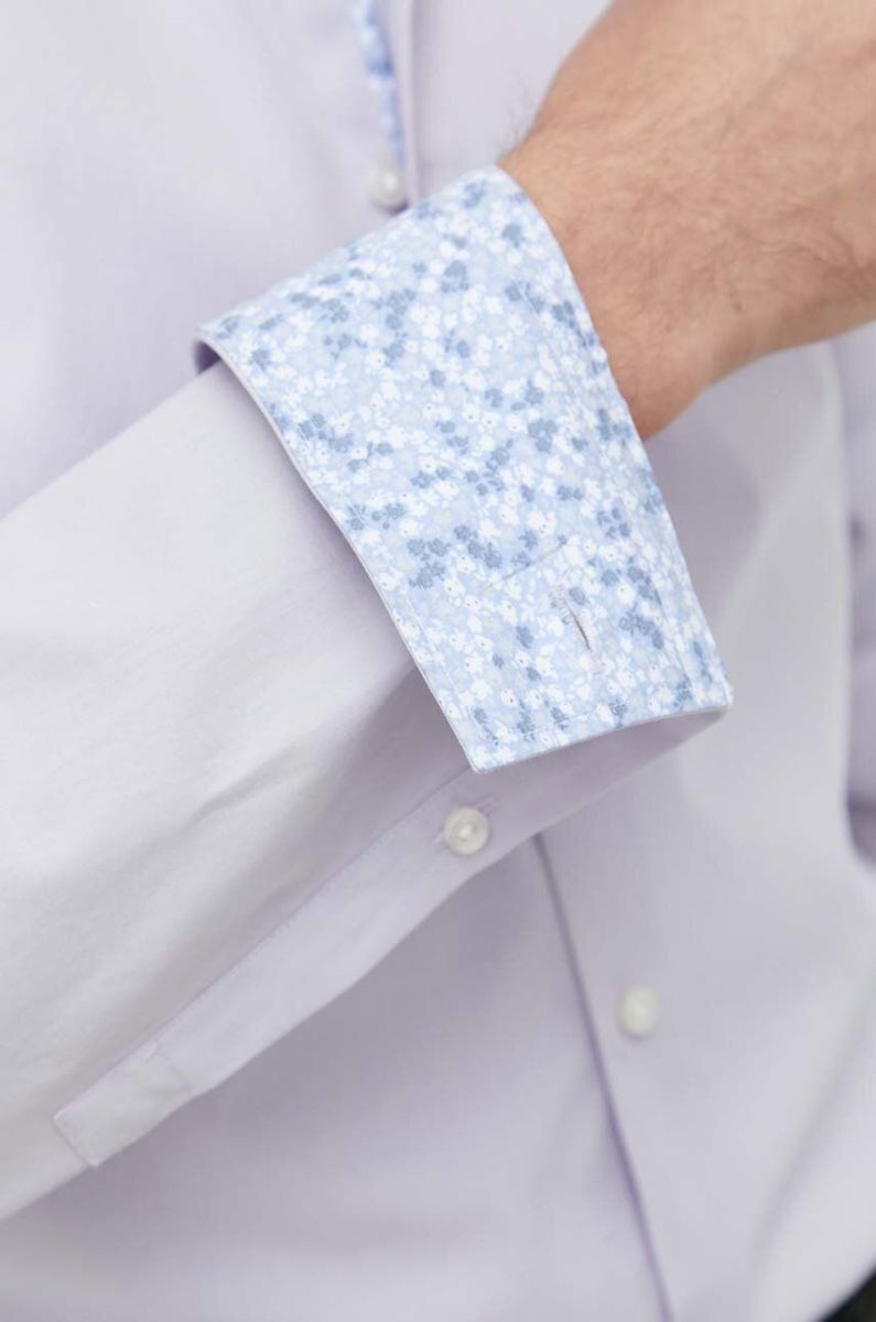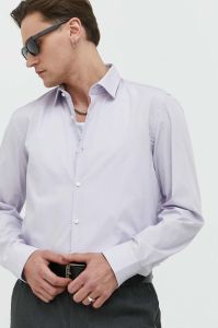 Бавовняна сорочка HUGO чоловіча колір фіолетовий slim класичний комір (3144331)