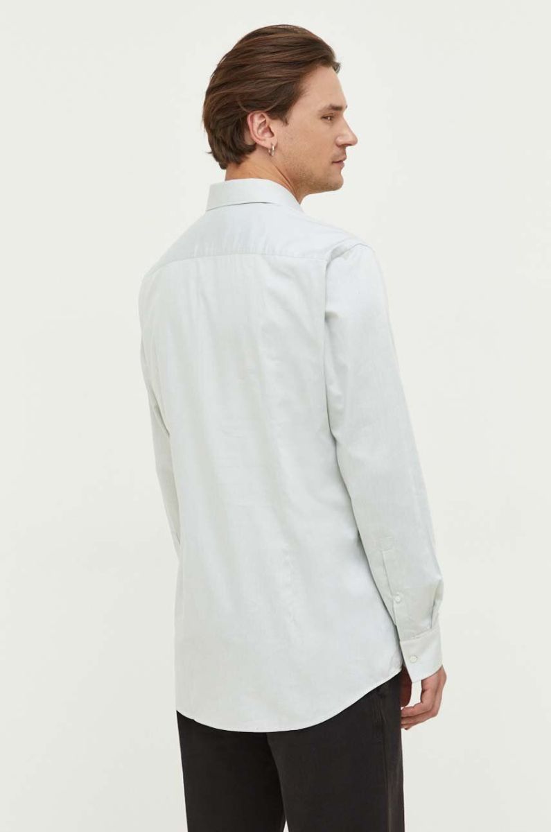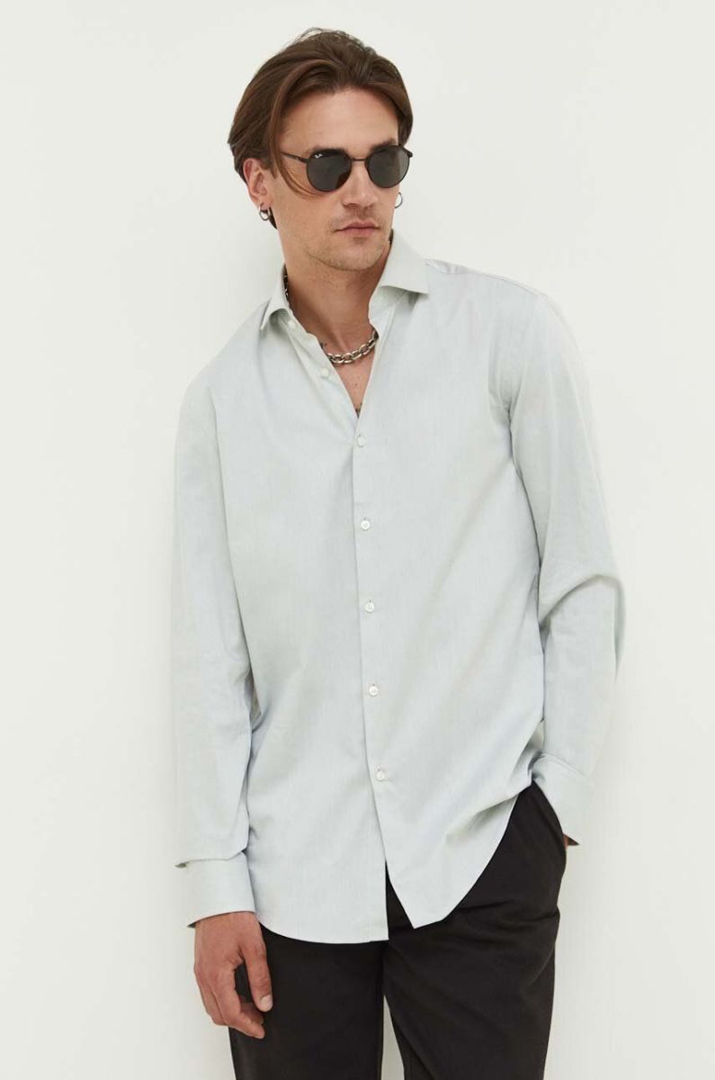Бавовняна сорочка HUGO чоловіча колір зелений slim з італійським коміром