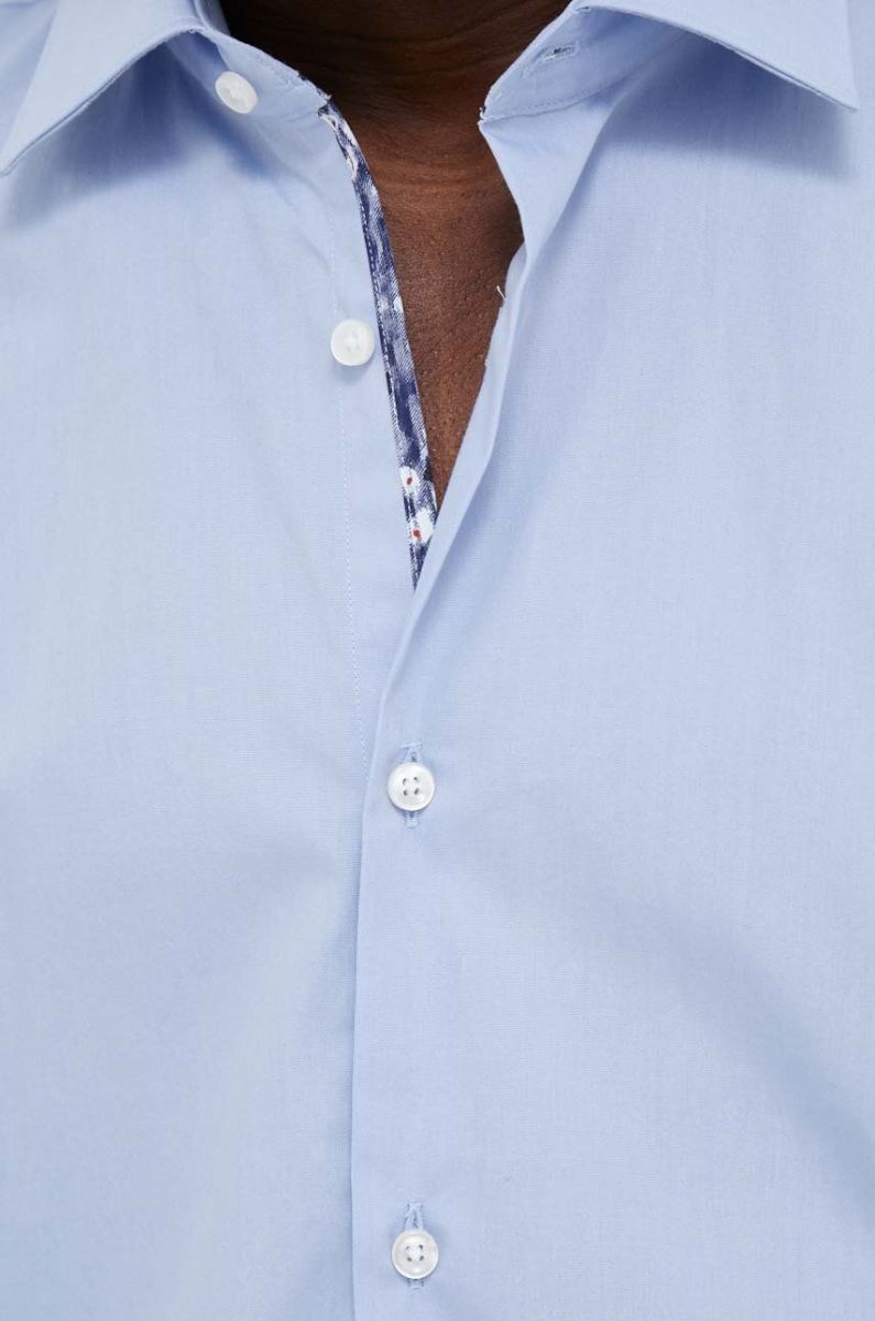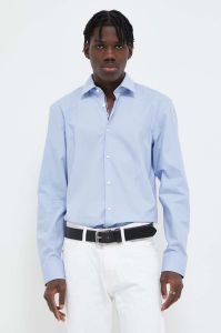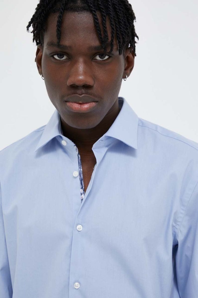 Бавовняна сорочка HUGO чоловіча slim з італійським коміром колір блакитний