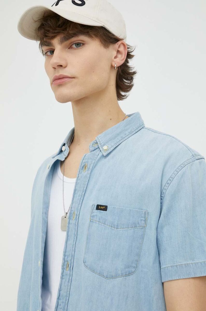 Бавовняна сорочка Lee чоловіча regular комір button-down колір блакитний (3261122)