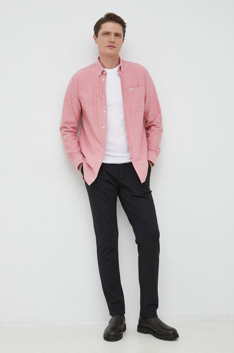 Бавовняна сорочка Pepe Jeans чоловіча колір фіолетовий regular класичний комір