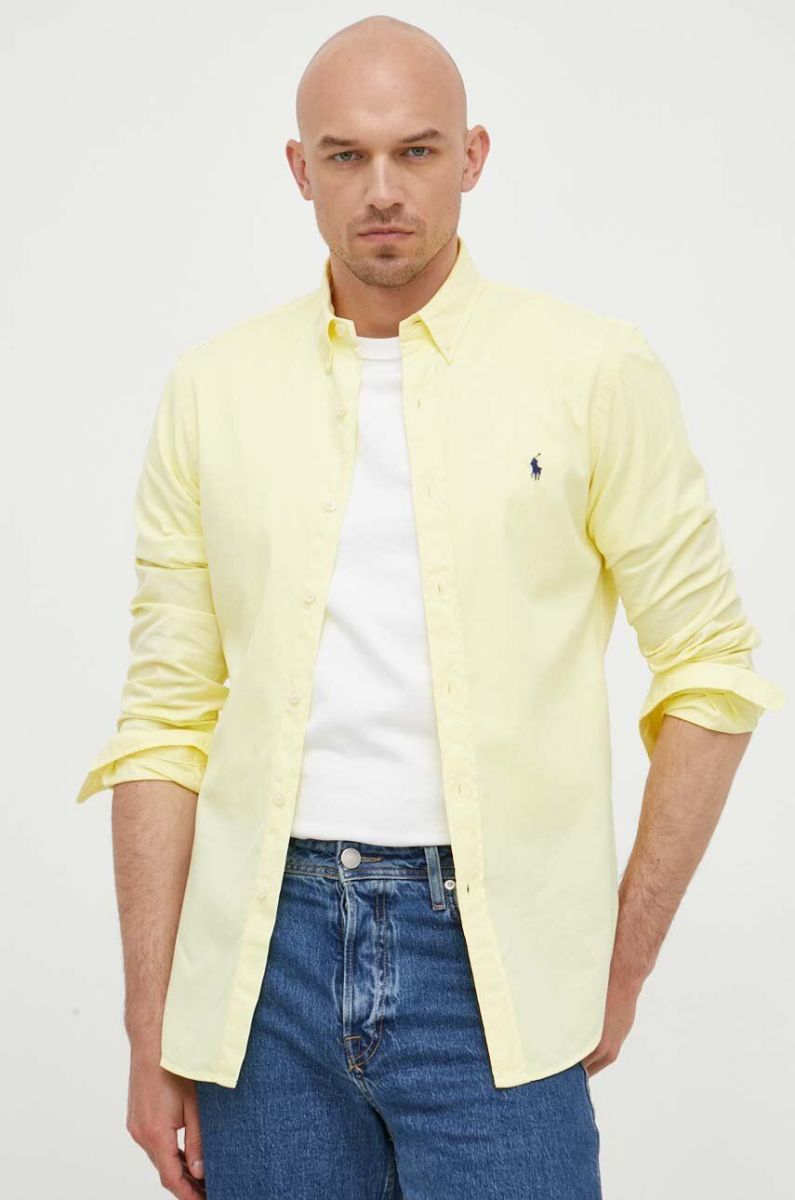 Бавовняна сорочка Polo Ralph Lauren чоловіча колір жовтий slim комір button-down