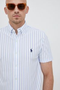 Бавовняна сорочка Polo Ralph Lauren чоловіча regular комір button-down колір блакитний (2965018)