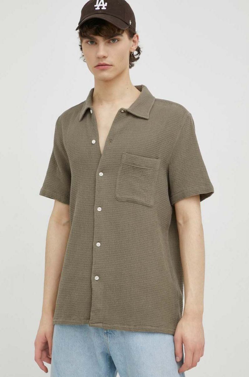 Бавовняна сорочка Samsoe Samsoe Avan чоловіча колір зелений regular класичний комір
