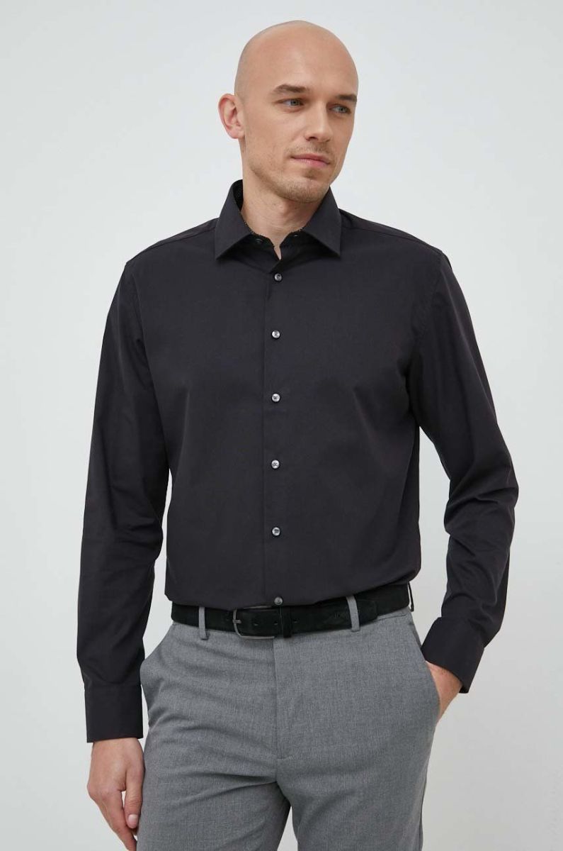Бавовняна сорочка Seidensticker чоловіча колір чорний slim класичний комір (2978617)