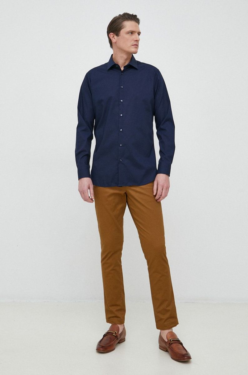 Бавовняна сорочка Seidensticker чоловіча колір синій slim класичний комір (2978467)