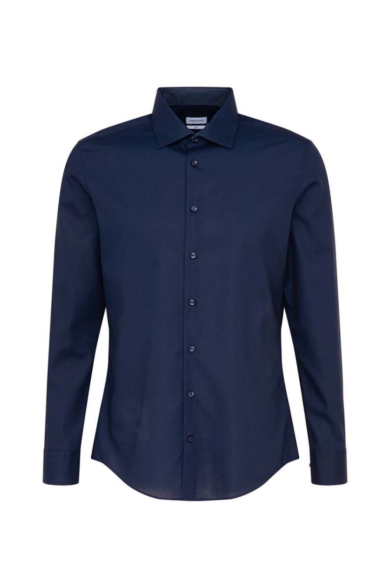 Бавовняна сорочка Seidensticker чоловіча колір синій slim класичний комір (2978472)