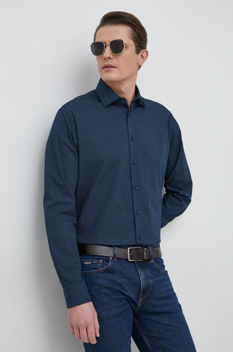 Бавовняна сорочка Seidensticker чоловіча колір синій slim класичний комір (2978629)