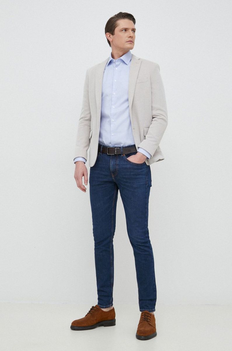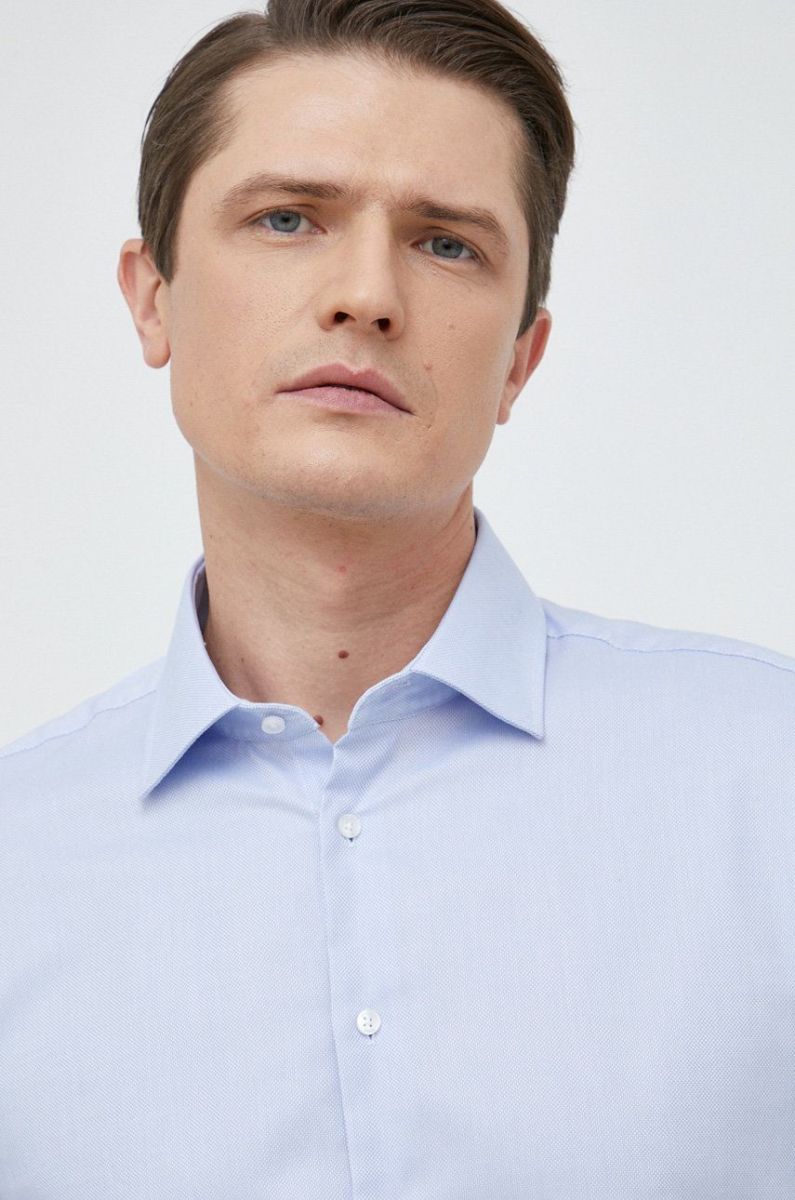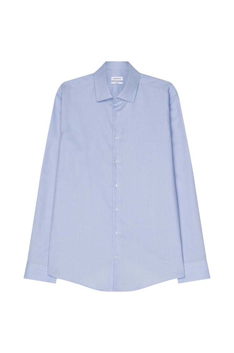 Бавовняна сорочка Seidensticker чоловіча slim класичний комір колір блакитний (2978528)