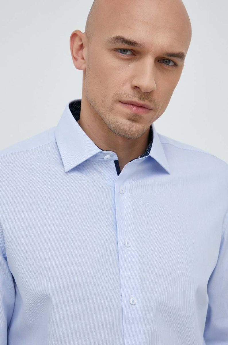 Бавовняна сорочка Seidensticker чоловіча slim класичний комір колір блакитний (2978545)