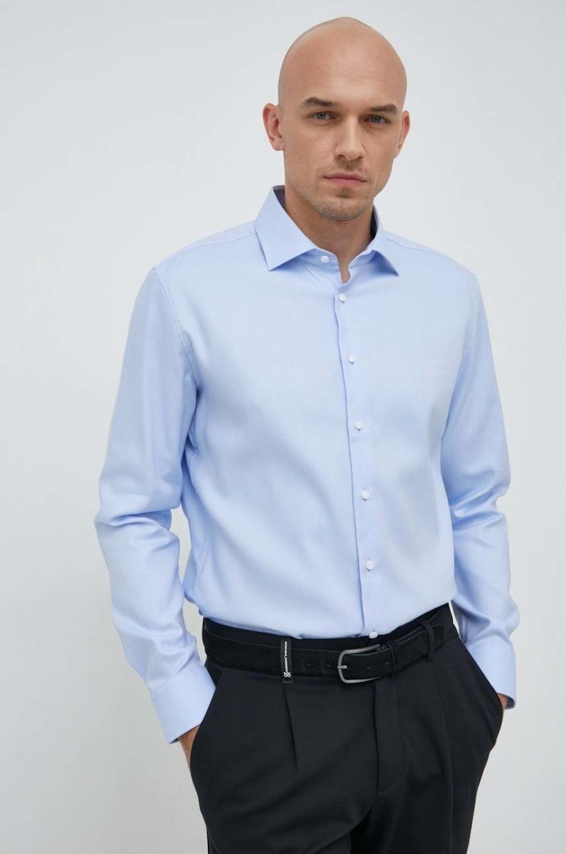 Бавовняна сорочка Seidensticker чоловіча slim класичний комір колір блакитний (2978658)