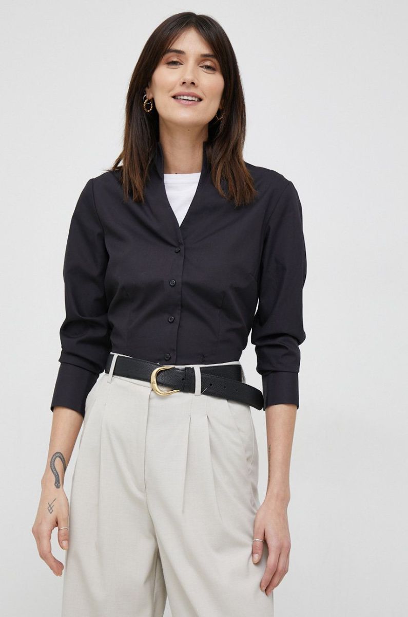 Бавовняна сорочка Seidensticker жіноча колір чорний slim