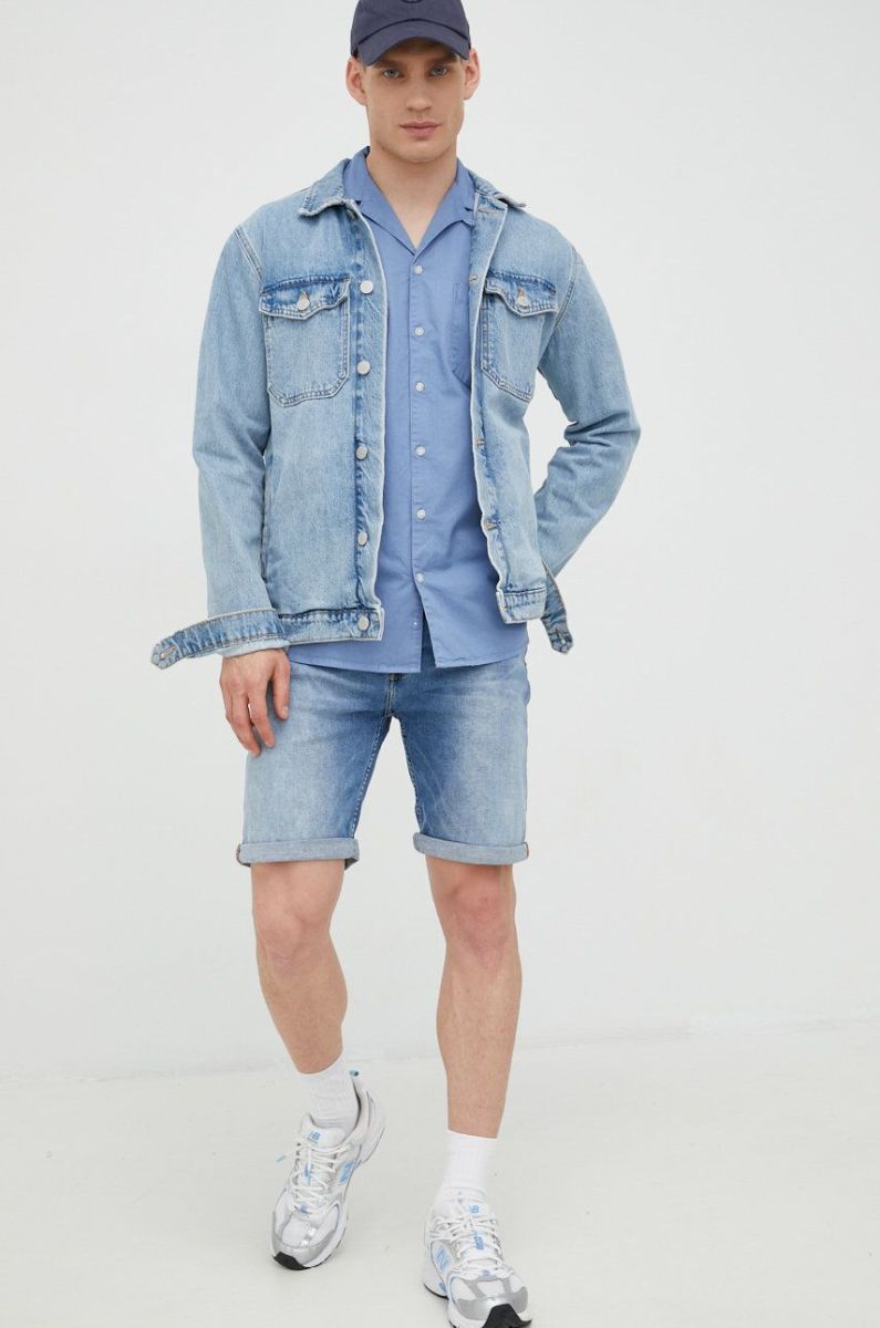 Бавовняна сорочка Solid чоловіча regular колір блакитний