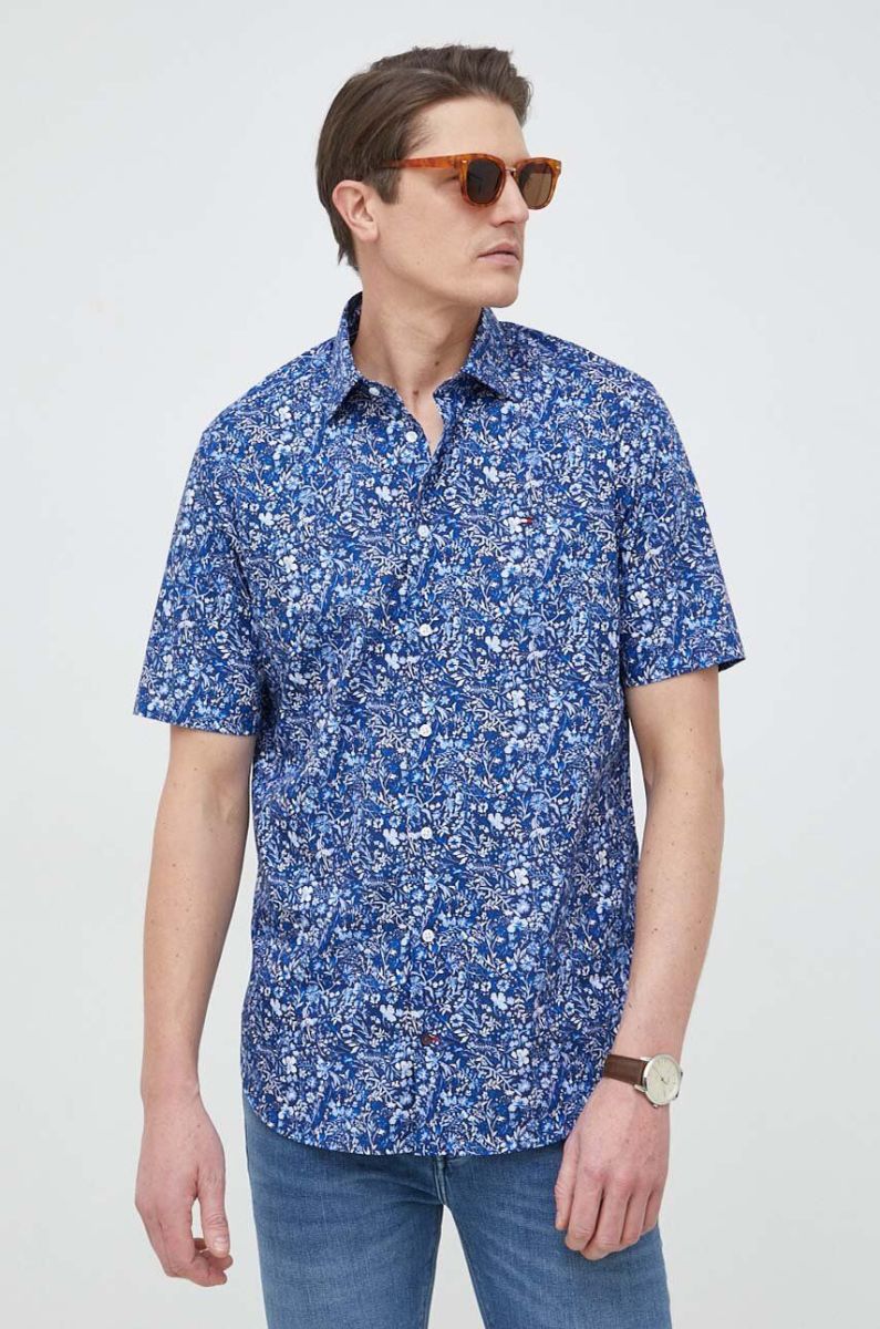 Бавовняна сорочка Tommy Hilfiger чоловіча колір синій regular класичний комір (3035763)