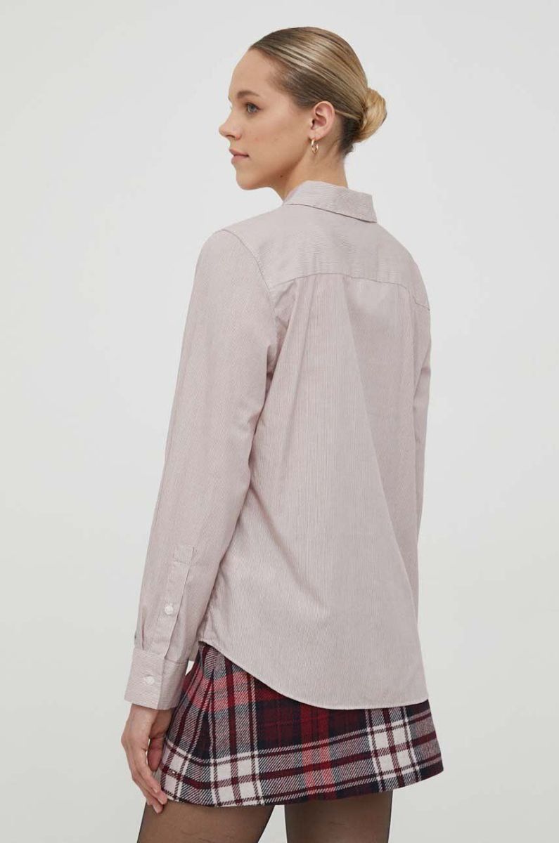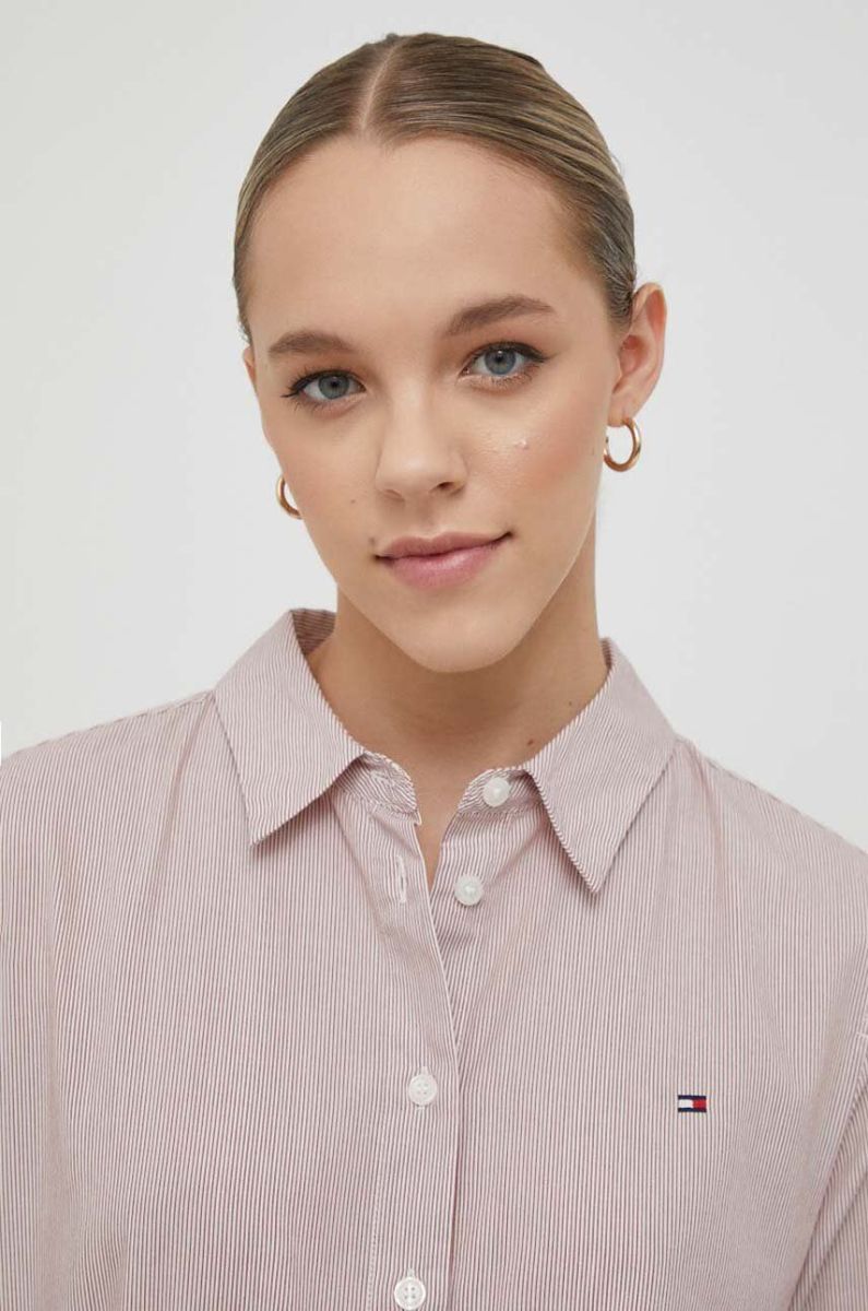 Бавовняна сорочка Tommy Hilfiger жіноча колір бордовий regular класичний комір