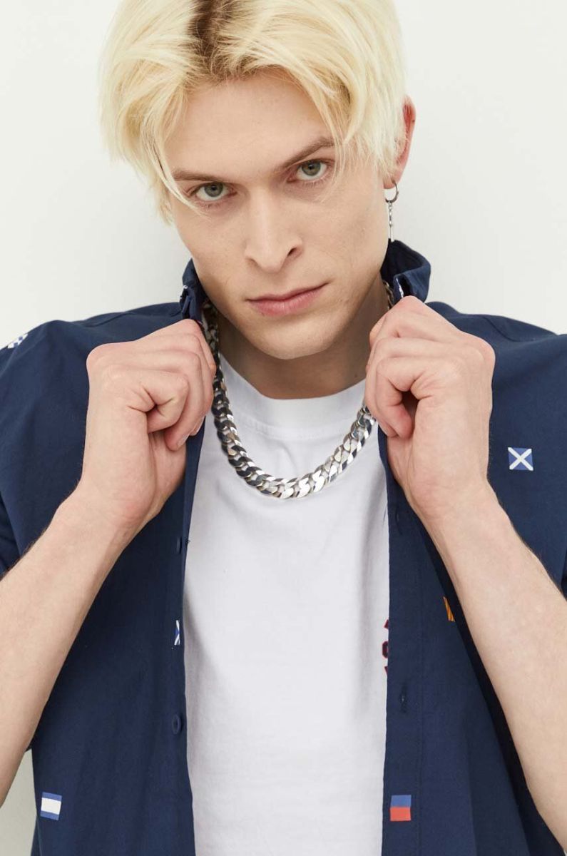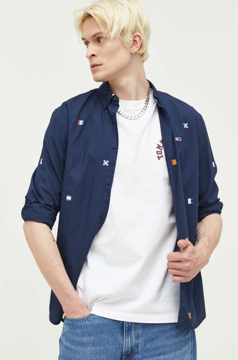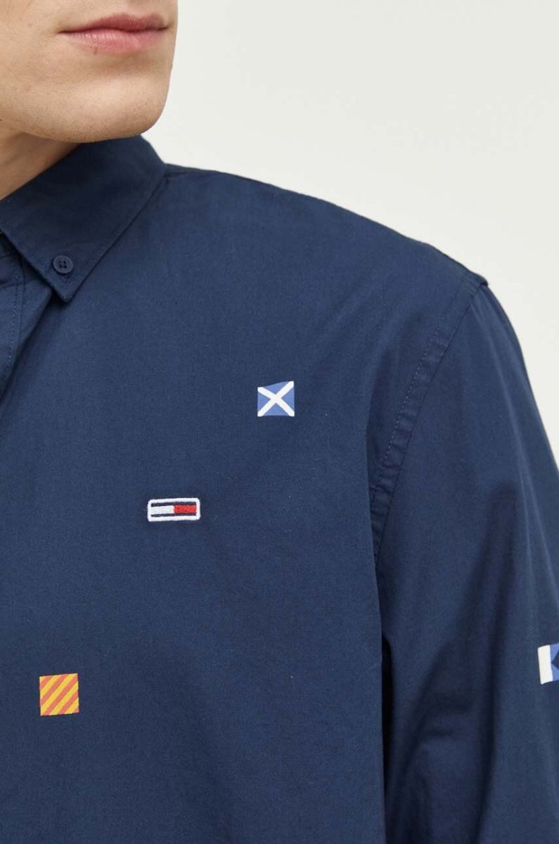Бавовняна сорочка Tommy Jeans чоловіча колір синій regular комір button-down (3284988)