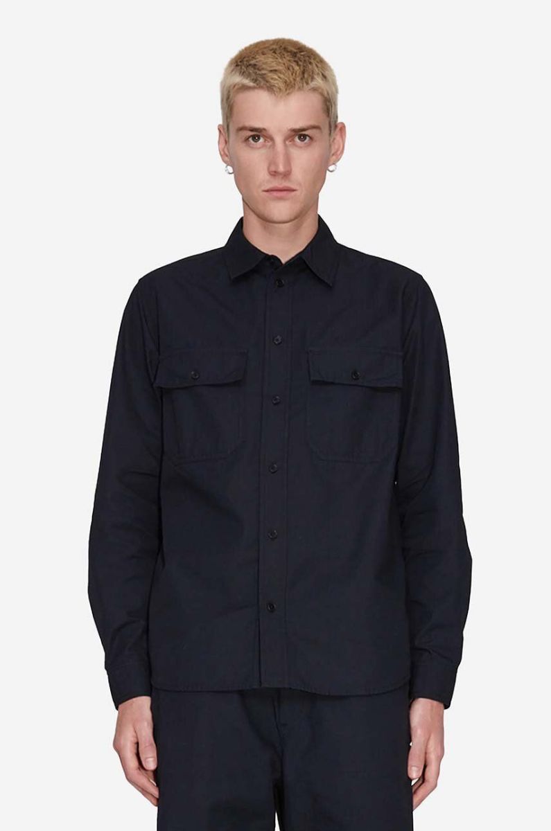 Бавовняна сорочка Wood Wood чоловіча колір чорний regular класичний комір 12315311.5276-BLACK