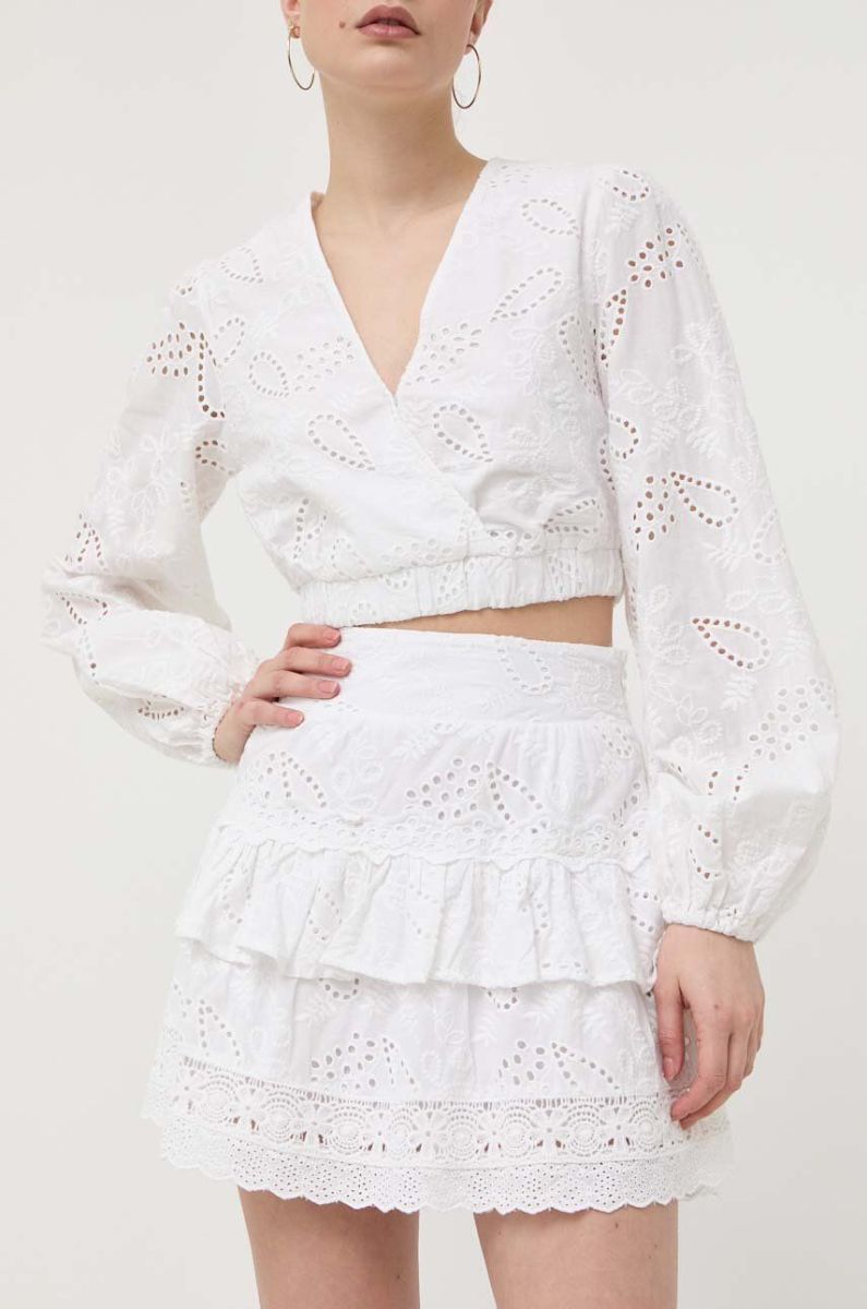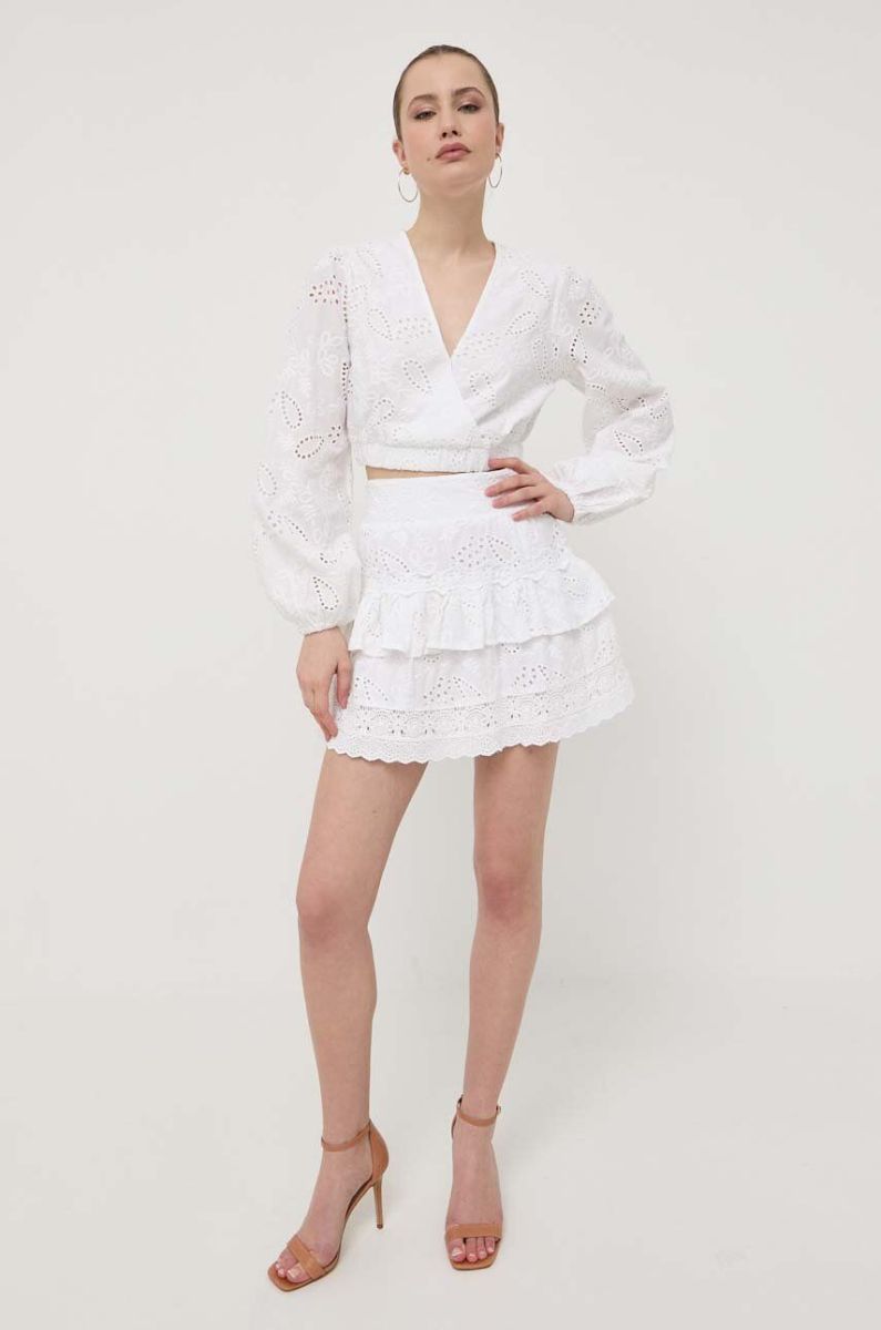 Бавовняна спідниця Guess колір білий mini розкльошена (3181561)