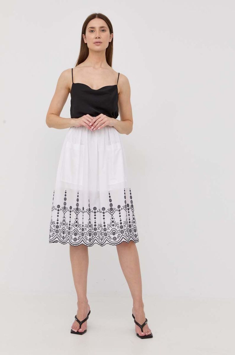 Бавовняна спідниця MAX&Co. колір білий midi розкльошена