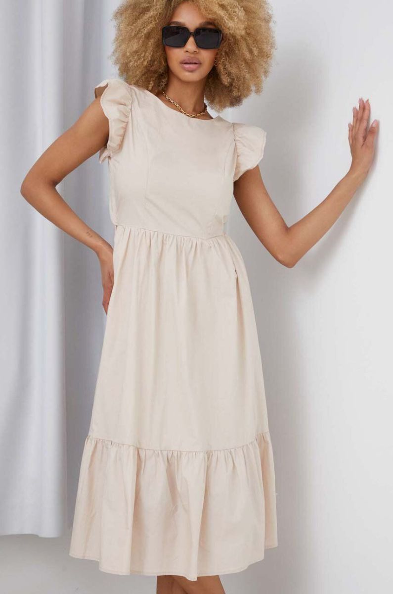 Бавовняна сукня Answear Lab колір бежевий midi розкльошена (3339671)